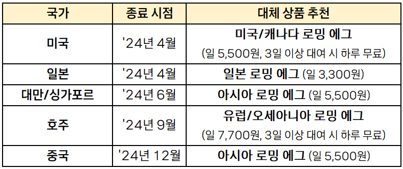 3G 요금제 또는 3G 휴대폰 이용 고객님은 3G 종료 국가에서 로밍 이용이 불가합니다.